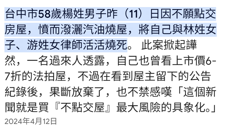 → wen12305: 後我爸告誡我們家族,永遠不要碰法拍,就醬 10/27 13:53