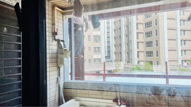 陽台現況(隔壁超市建造中, 未來可能會有遮擋問題)