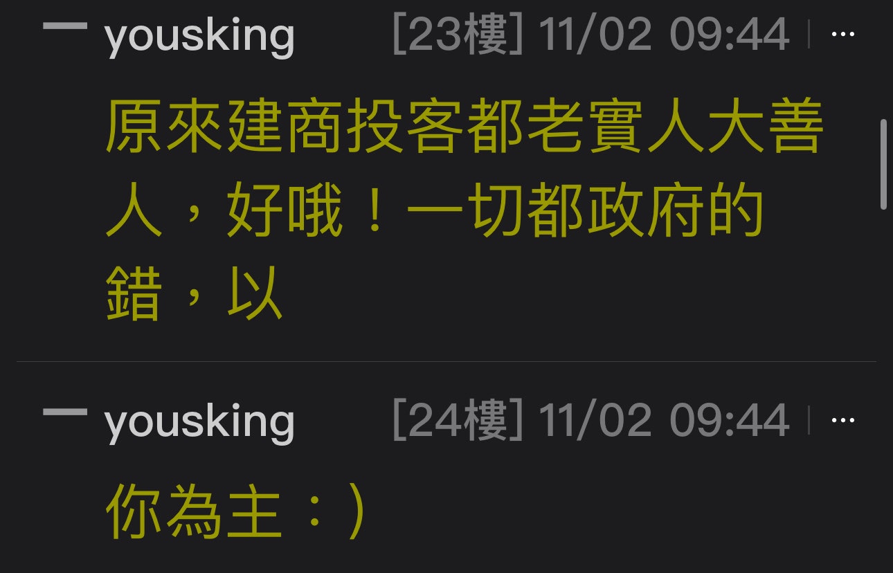 yousking: 原來建商投客都老實人大善人,好哦!一切都政府的錯,以 11/02 09:44