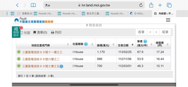 近地址實價登錄截圖: