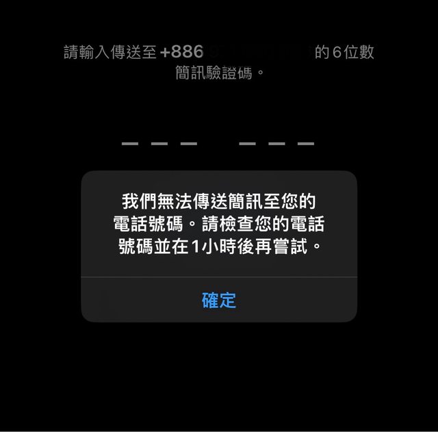 昨天手機號碼輸入完就出現這個訊息