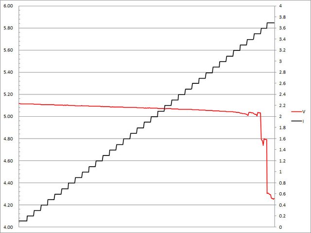 過2.7A大幅壓降,超過3.7A截止