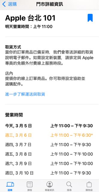 標題[情報] 3/6週三Apple 臺北101營業時間調整