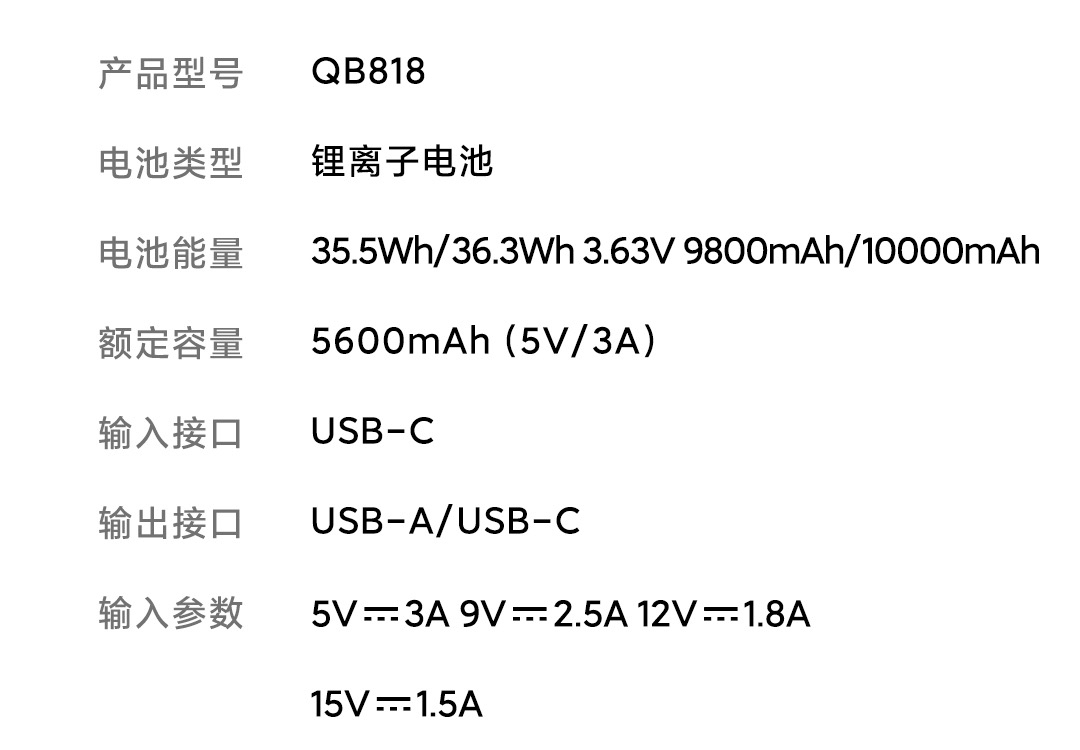 10000mAh,18W輸出快充
