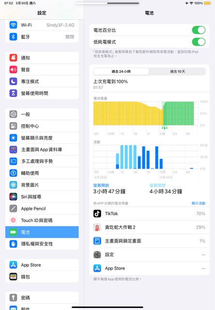 昨天晚上幫女兒的ipad 10 充電