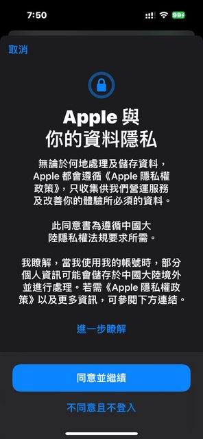 標題[討論] apple id登入出現中國大陸授權?