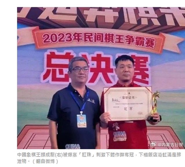 標題[新聞] 中國象棋王被爆塞「肛珠」刺激下體作弊