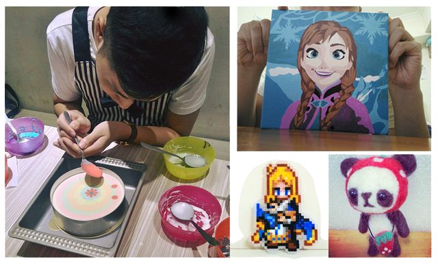 喜歡ACG、美食、各種DIY,像甜點、數字油畫、拼豆、羊毛氈...等等