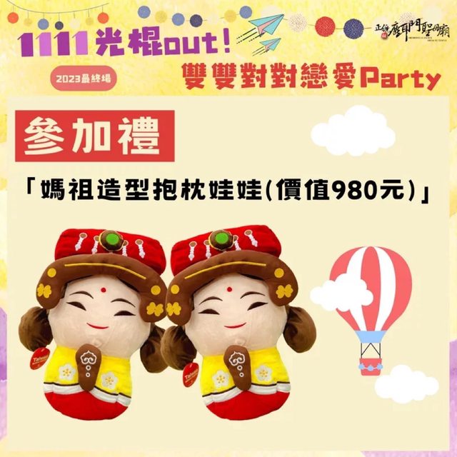 想問有沒有女生1111當天沒事要一起去吃辦桌,拿娃娃的