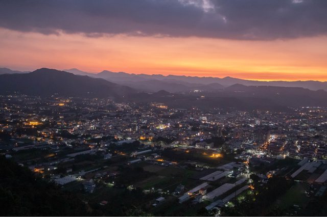 (埔里虎頭山漂亮的夕陽和夜景)