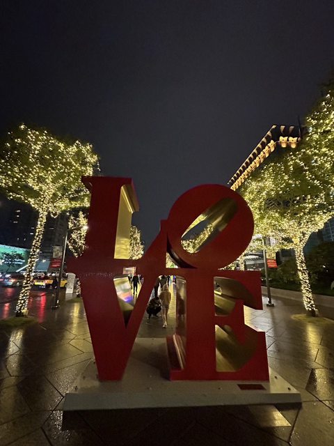 冬季街道上的繽紛聖誕裝飾及看雨