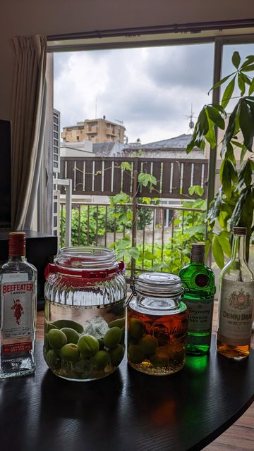 每年都會釀梅酒,今年基底除了老班底琴酒以外嘗試了夢幻的電氣白蘭