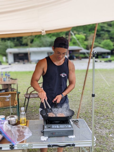偶爾會露營,喜歡跟朋友在戶外聊天喝酒煮飯的感覺,一年大概露2-3次,都是要自己搭