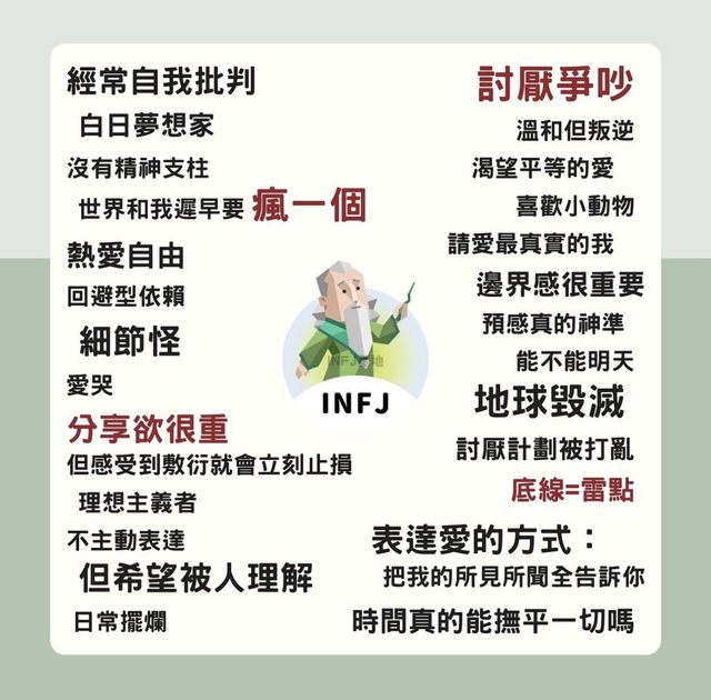 測過一次人格特質:infj