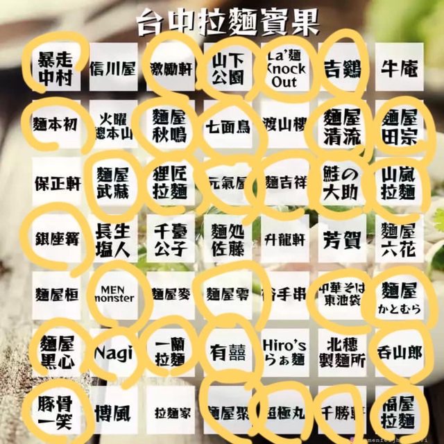 台中拉麵賓果