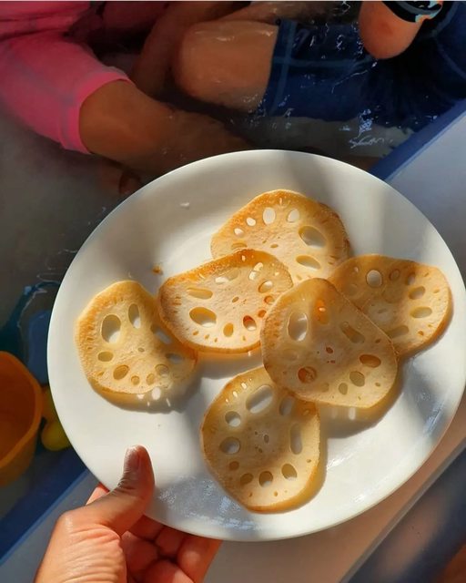 蓮子湯、蓮藕排骨湯,都曾是我們餐桌上的佳餚。還有烤蓮藕切片,酥脆的口感跟馬鈴薯