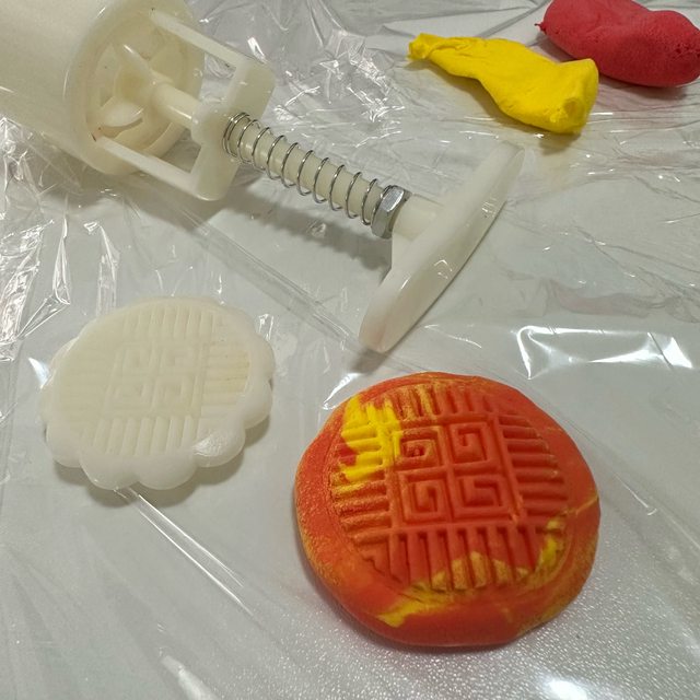 帶孩子利用輕黏土製作擬真版月餅。