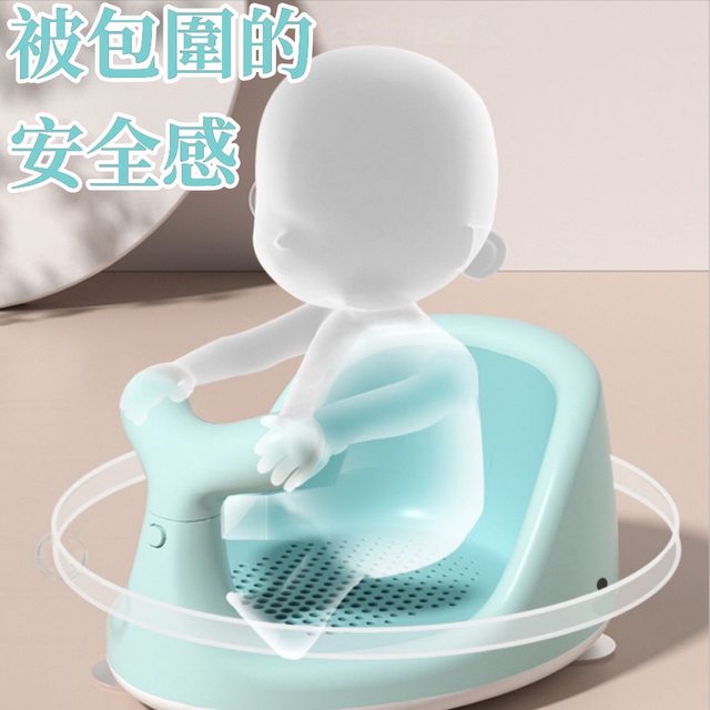 寶寶目前還沒辦法坐穩,而且她習慣坐著洗不是躺著