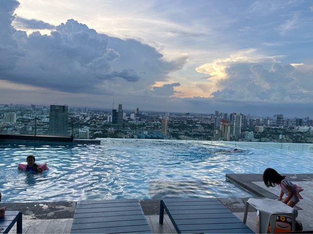 白天跑完行程如果小孩還有電,就是去飯店泳池玩到累然後吃晚餐睡覺!