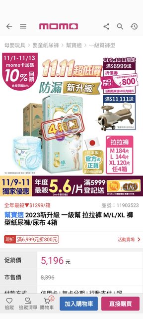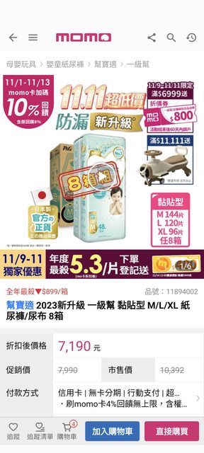終於等到11/11來清空購物車,整理了我最後選的平台MOMO的優惠給需要的媽咪參考