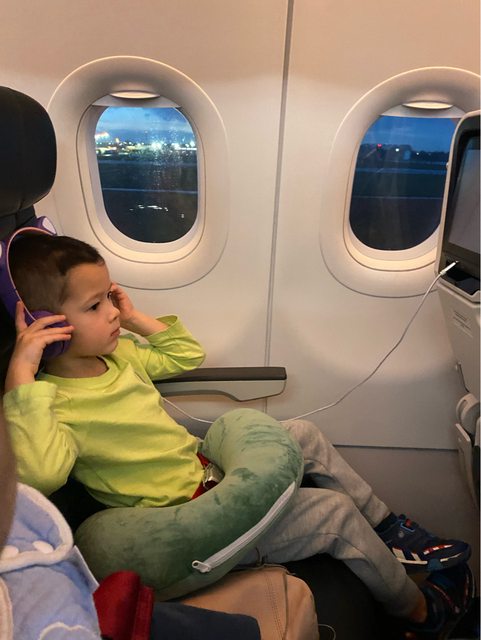 上睡著但過安檢必須抱起來,一路到上機後起飛才稍微睡了一下。