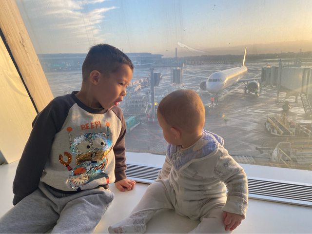 早去接哥哥放學後就直接去機場了,一路都非常順利,當然安檢又是個災難,弟弟在推車