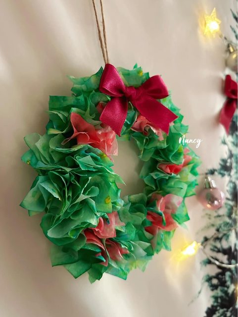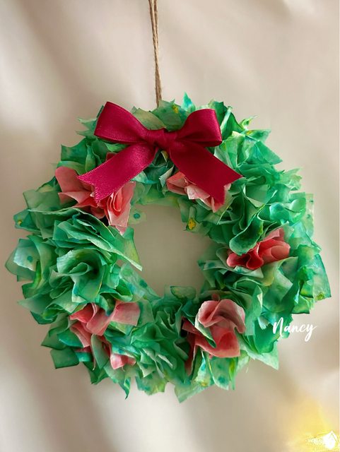 是最近帶孩子玩的另一個「聖誕紙巾花圈」