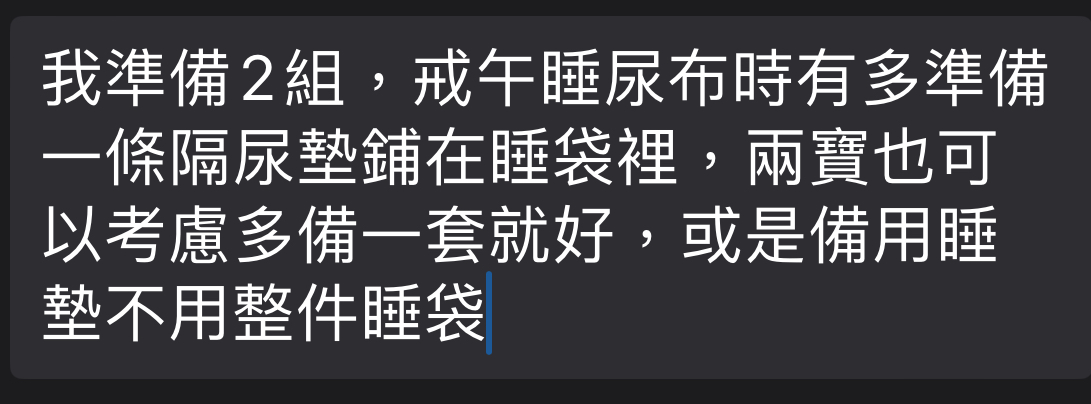 推 sunnie5566 : 睡袋兩組,托嬰的話應該買簡易的就可以,睡袋多買再 04/11 12:51