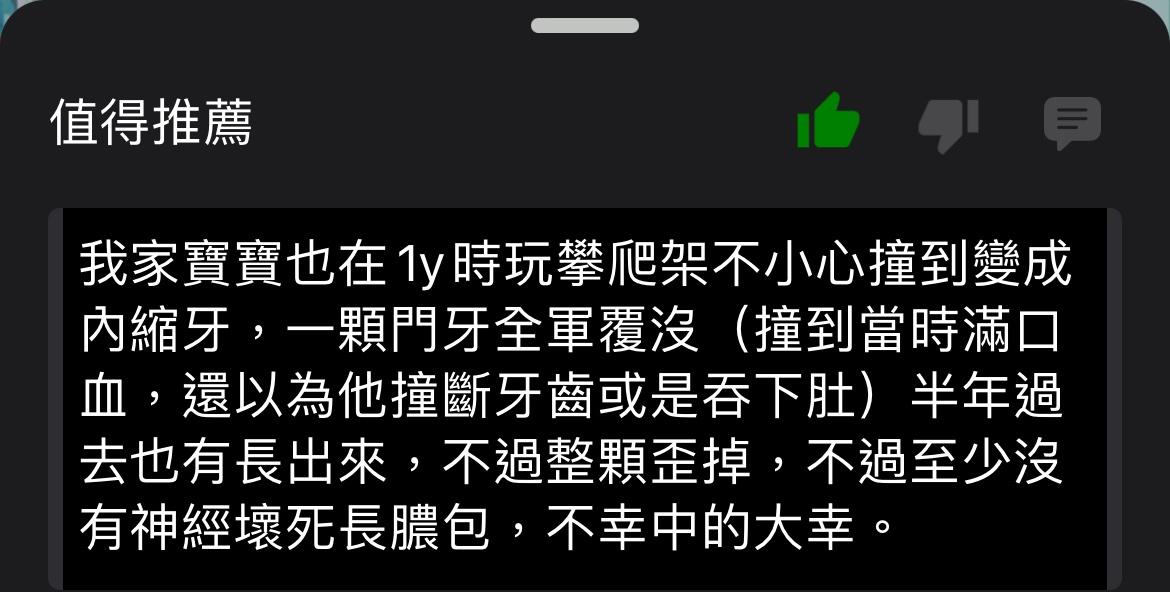 標題[心得] 1Y2M跌倒門牙內縮