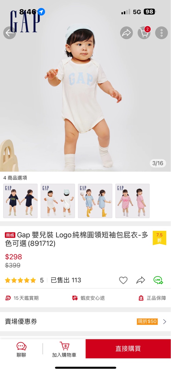 推 hsu09952130 : 這家可以在蝦皮GAP的賣場比價看看,看過好幾次蝦皮 07/01 08:48