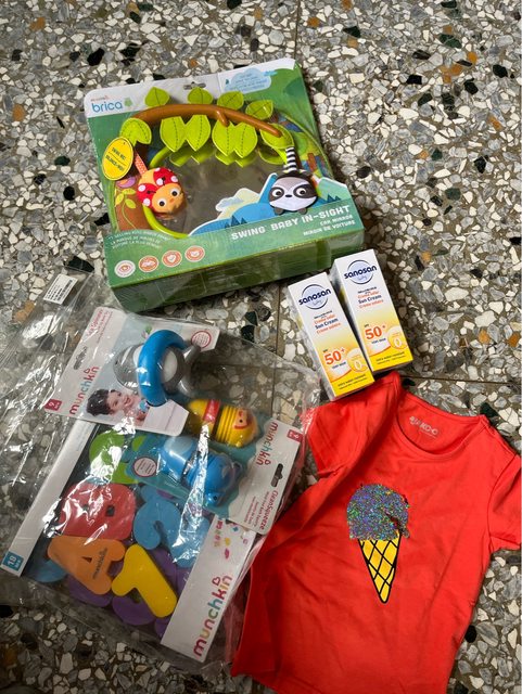 分享一下戰利品,3.5折的洗澡玩具跟汽車後視鏡/即期特價買一送一防曬兩條兩百多/一
