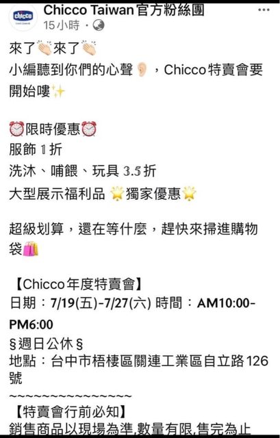 標題[好康] chicco 梧棲特賣會 7/19-7/26