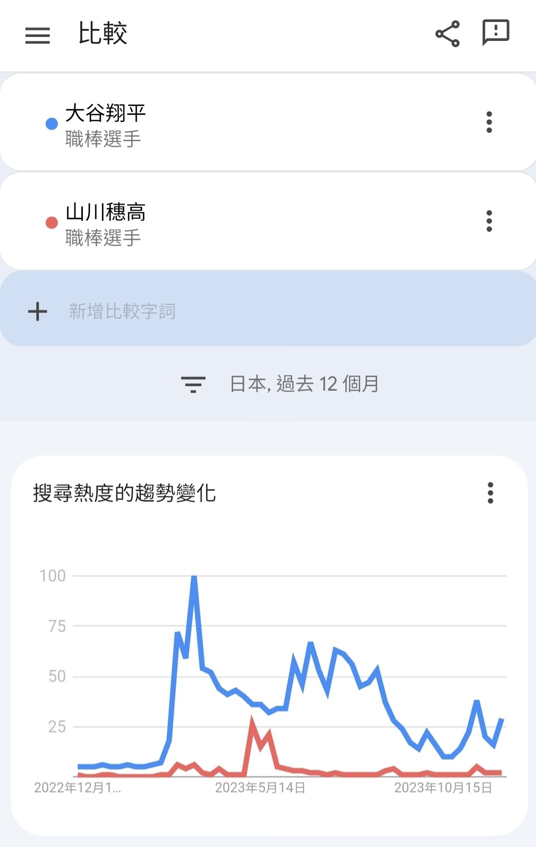 推 korzen: 其實搜尋行為並不完全代表一個人到底多紅,以大谷來說搜 12/16 00:39