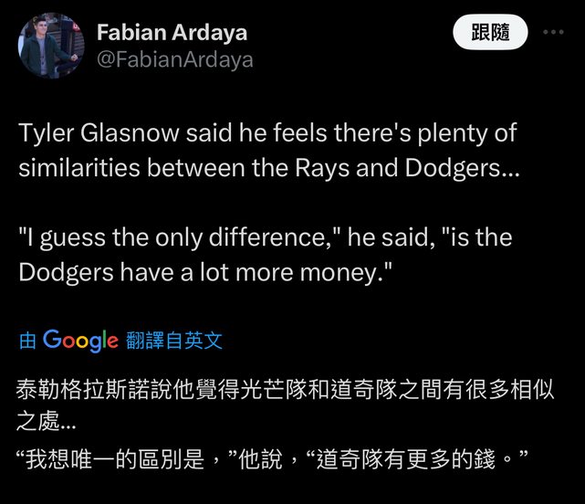 推 ericinttu: 道奇和光芒唯一的區別:道奇錢比較多 ← 是不是在臭 12/19 04:25