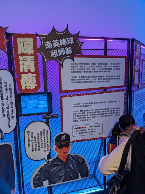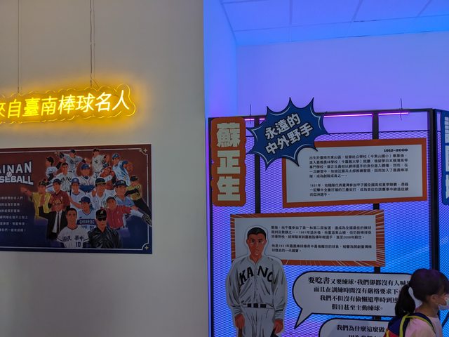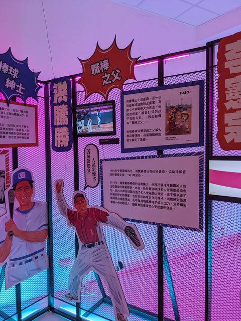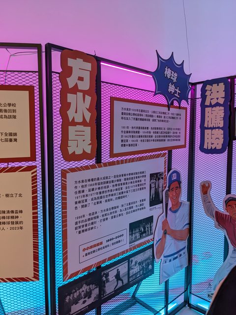 : 右邊展區是台灣棒球名宿的生平介紹