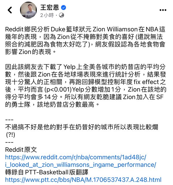 有興趣的人也可以移駕 NBA 板觀看詳細數據