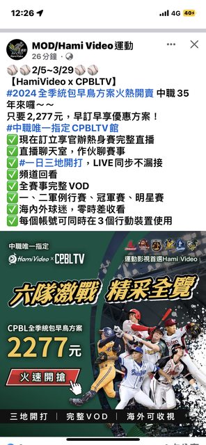 → FeverPitch: 不過訂Hami運動館的好處是還有NBA MLB 英超等等 02/05 13:52