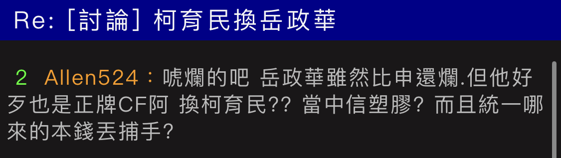 → lrh18: 一換一不行 一換二可考慮 說蠢這是在自介嗎? 02/12 16:40
