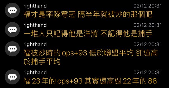 → shifa: 限額洋人野手沒砲管就不要想說有上場的必要 02/12 21:54