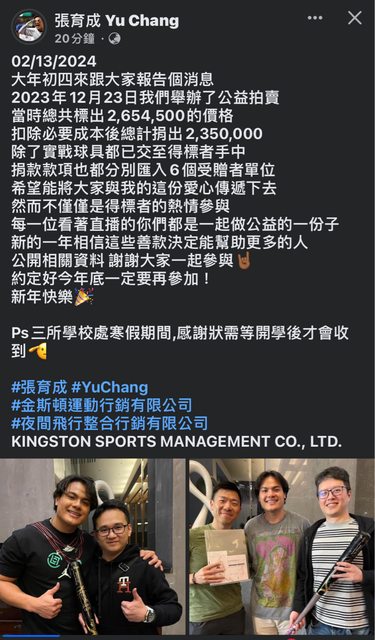 標題[分享] 張育成:大年初四跟大家報告個消息