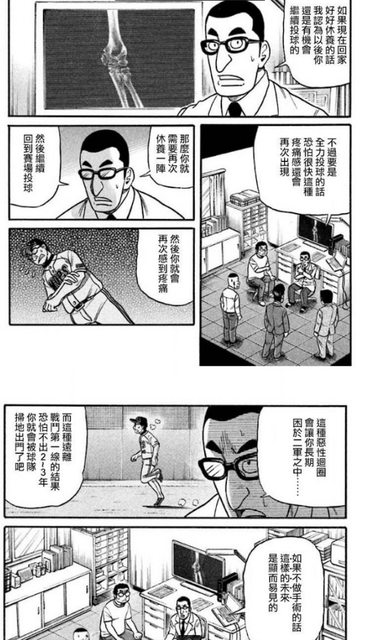 漫畫錢進球場有一幕 主角手肘受傷