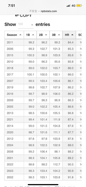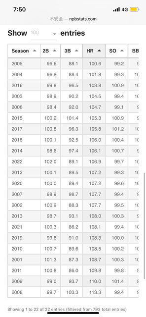 基本上HR部分沒有一年是低於100