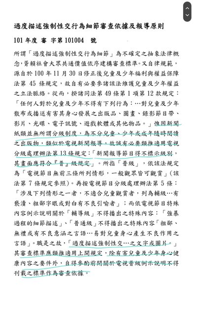 過度描述強制性交行為細節案件審查依據及報導原則