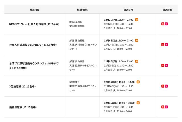 12/09 (一) 12:05 日職紅隊 vs 日本社會人