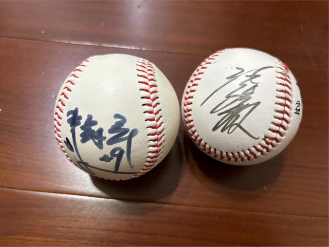 發現有兩顆不知道是誰的簽名球