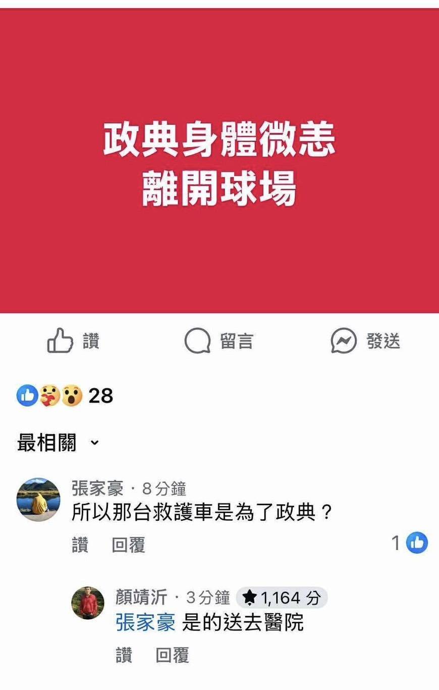 脆上有人說上救護車的就是他 聽說是身體微恙 希望典哥不要有事啊 --