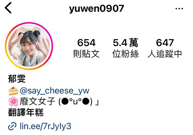 → michael0419: Follow很久了 以前大學時期短髮比較 118.232.104.9 02/12 08:46