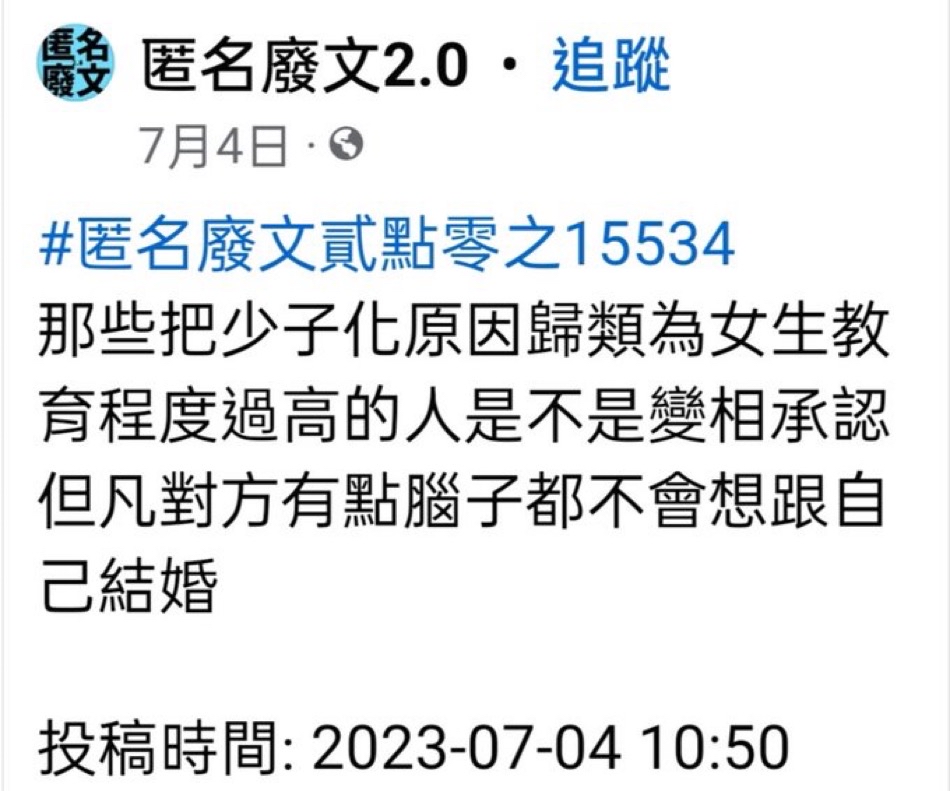 噓 lolicat : 少子化跟女權有什麼關係?你活在清朝嗎?還是民國初 12/09 14:50