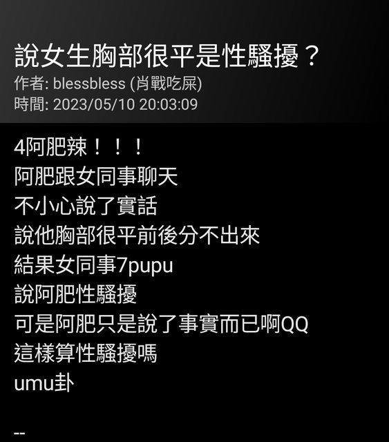 → stopdog : 台男因為太噁沒人想看沒有被騷擾的問題,今天被甲 12/01 13:12