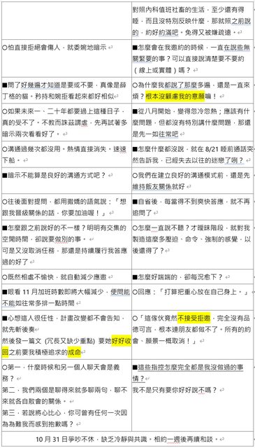 : 我一整個問號,所以12/7邀她讓彼此說說各自的看法,然後相處解決辦法